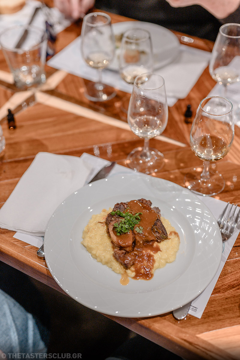 Τη γευσιγνωσία ακολούθησε ένα μικρό γεύμα με σαλάτα κινόα αβοκάντο και ντρέσινγκ εσπεριδοειδών και για κυρίως πιάτο, Οσομπούκο Μιλανέζε. Τα συνοδέψαμε με The Classic Laddie και Port Charlotte 10 years old.