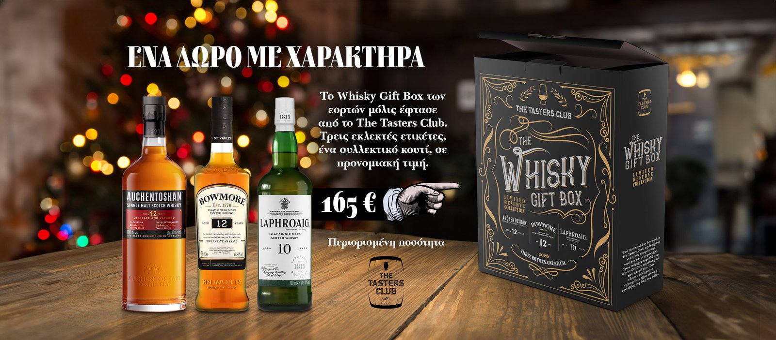Το The Whisky Gift Box διατίθεται σε προνομιακή τιμή και σε περιορισμένη ποσότητα, ως μια εορταστική προσφορά αποκλειστικά από το The Tasters Club σε συμεργασία με τη ΔΥΝΑΜΙΚΗ Α.Ε..